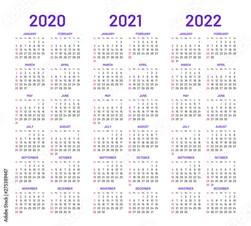 Simple 2019 2022 Years Calendar Royalty Free Vector Image